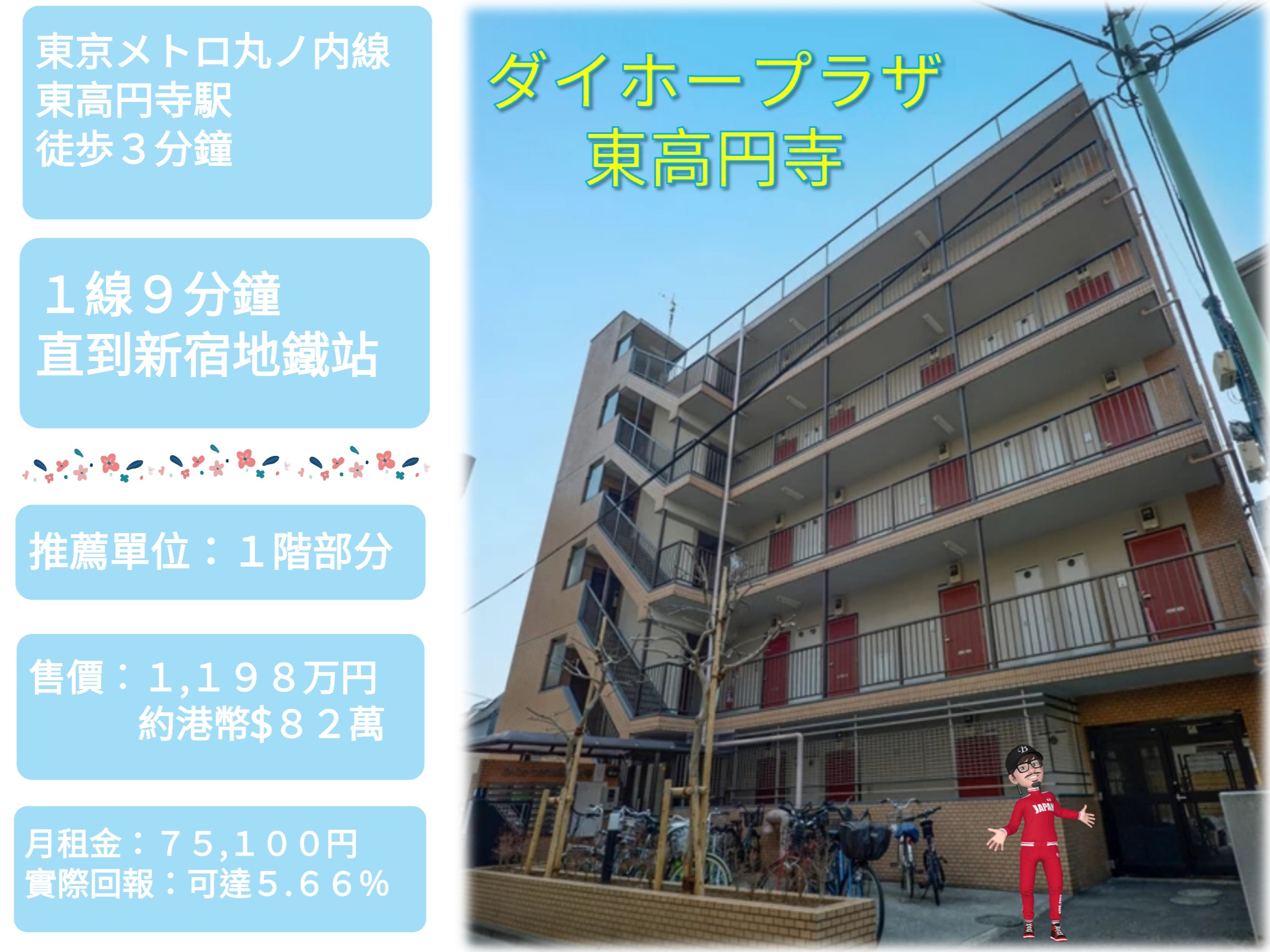 🚞交通︰東京メトロ丸ノ内線 東高円寺駅 徒歩3分鐘