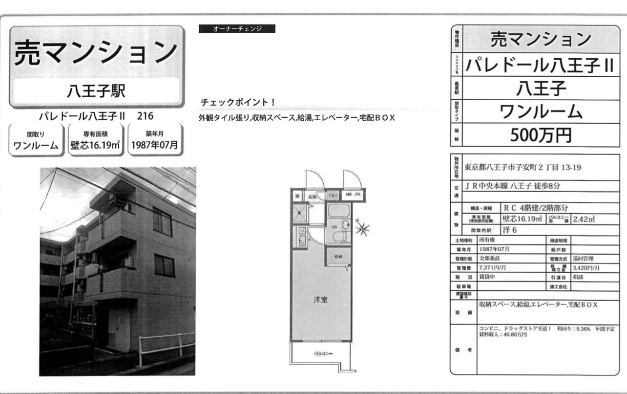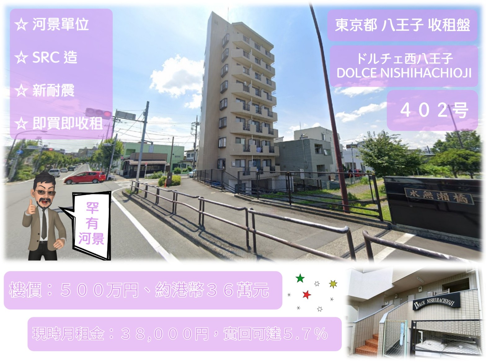 大廈建於1989年2月,新耐震基準,10層高(地上9層及地下1層),共25戶,有升降機。推薦單位在4樓402號室,單位專有面積約160平方呎,露台面約28平方呎,向西北,望河景,單位面積共有約188平方呎。