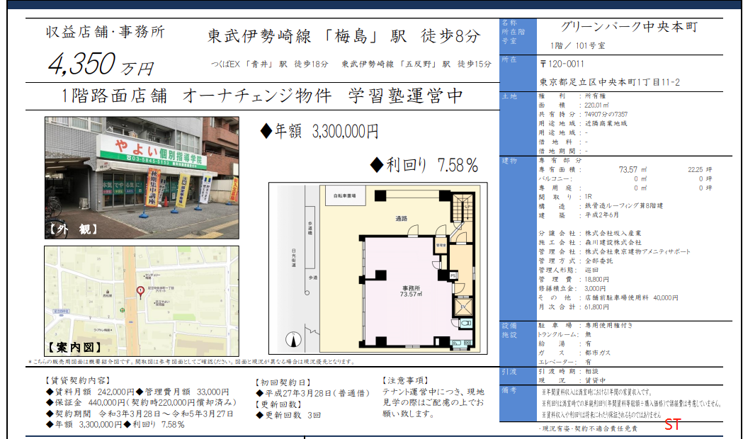 ★ 現時年租金3,300,000日元,實回可達5.88%